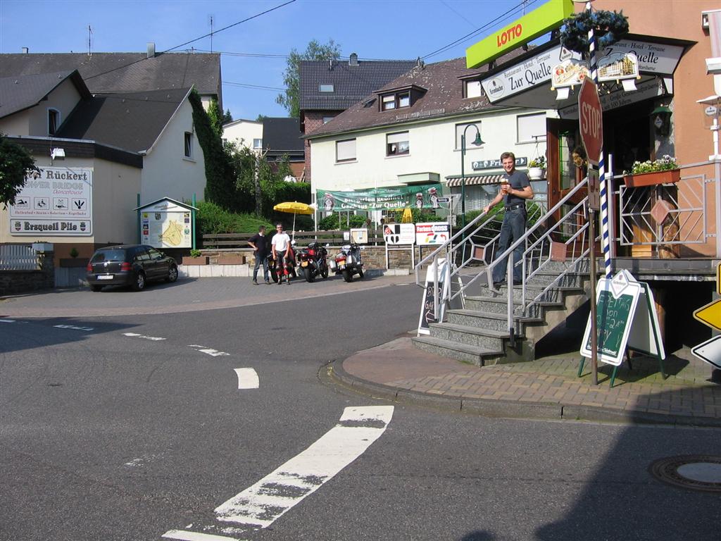 Henk en Bjorn en Francis zouden wachten tot Annelies opgehaald zou worden, en daarna nog naar Zur Quelle komen. De rest van de groep kon na het oponthoud wat ruim 2 uur duurde weer verder. We hadden nog tijd genoeg om de geplande route te rijden, en kwamen rond 9 uur op onze eindbestemming aan. Snel de motoren parkeren en de kamers verdelen en toen op naar de Spareribs ohne ende! Dit was niets teveel gezegd, en de ribbetjes gingen er dan ook goed in.